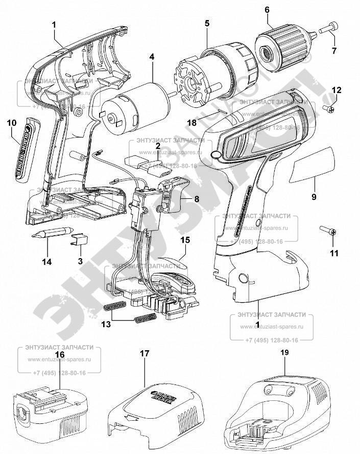 Black&Decker ЗАПЧАСТИ ДЛЯ ДРЕЛИ АККУМУЛЯТОРНОЙ BLACK AND DECKER CP141KB TYPE 1