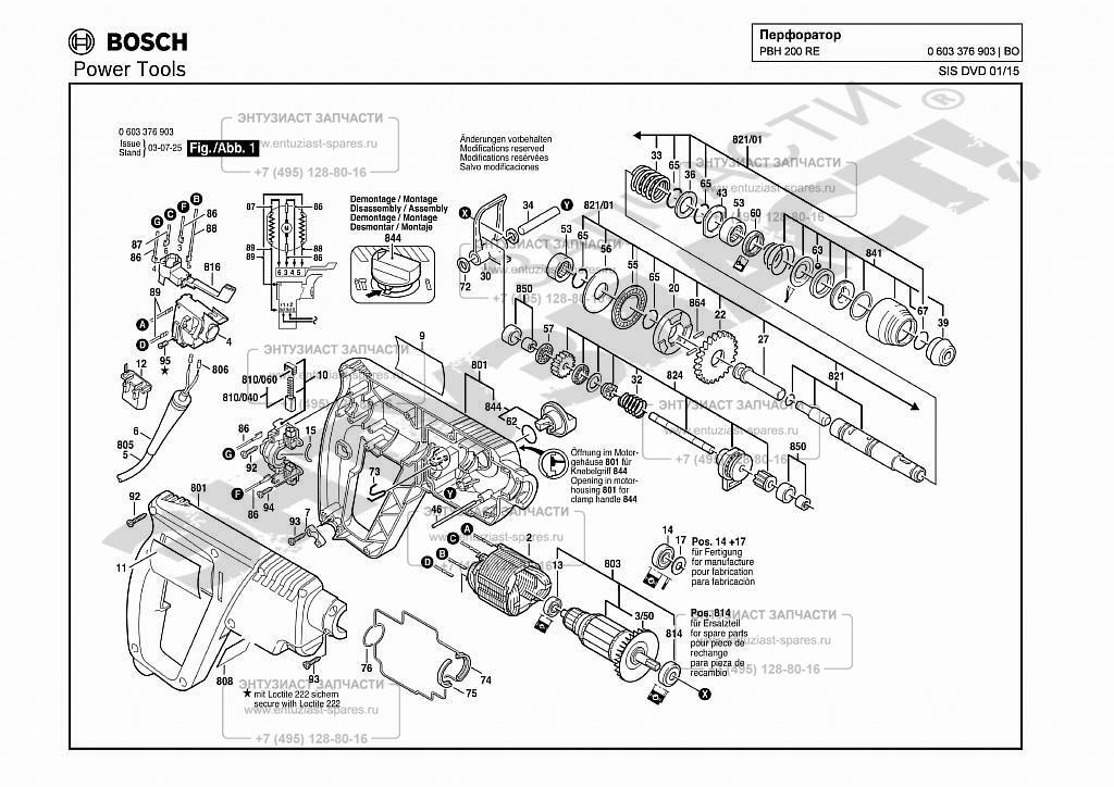 Bosch ЗАПЧАСТИ ДЛЯ ПЕРФОРАТОРА (ДО 4 КГ) ЭЛЕКТРИЧЕСКОГО BOSCH PBH 200 RE (ТИП 0603376903) (ЧАСТЬ 1)