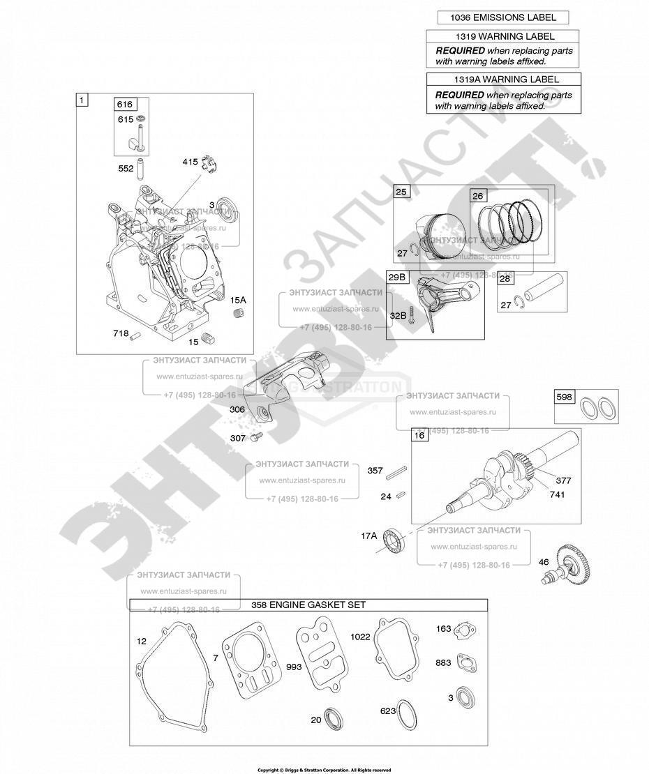 Briggs&Stratton ЗАПЧАСТИ ДЛЯ ДВИГАТЕЛЯ БЕНЗИНОВОГО BRIGGS AND STRATTON 13H332-0115-B8 (ВАЛ РАСПРЕДЕЛИТЕЛЬНЫЙ, ВАЛ КОЛЕНЧАТЫЙ, ЦИЛИНДР-КАРТЕР, ПОРШНЕВАЯ ГРУППА, КОМПЛЕКТ УПЛОТНЕНИЙ)