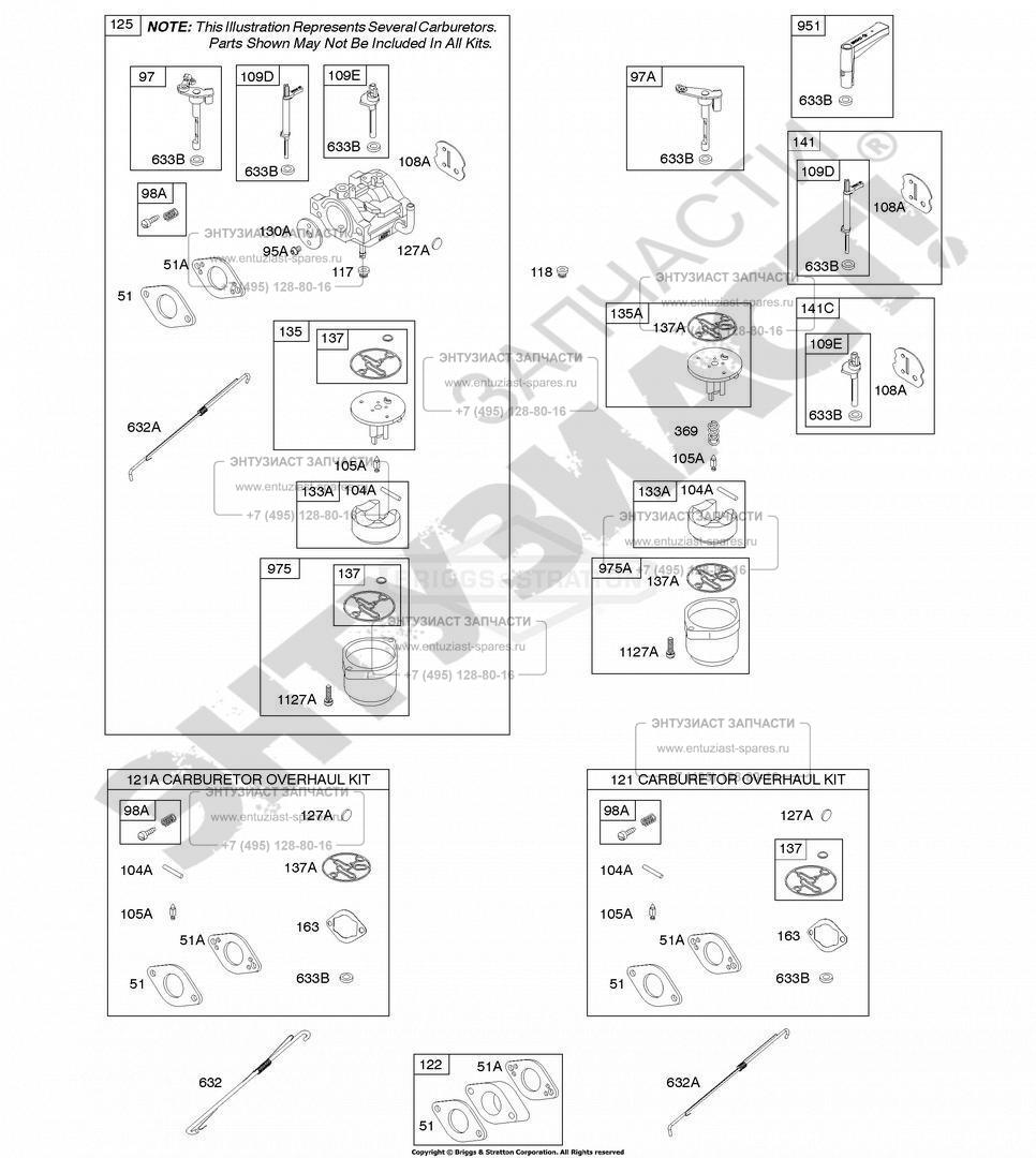 ЗАПЧАСТИ ДЛЯ ДВИГАТЕЛЯ БЕНЗИНОВОГО BRIGGS AND STRATTON 20H132-0122-B1 (КАРБЮРАТОР, РЕМКОМПЛЕКТ КАРБЮРАТОРА)