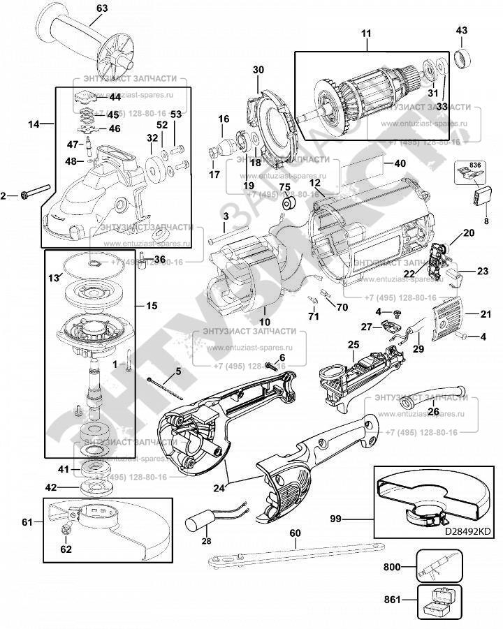 ЗАПЧАСТИ ДЛЯ МАШИНЫ ШЛИФОВАЛЬНОЙ УГЛОВОЙ ЭЛЕКТРИЧЕСКОЙ DEWALT D28492S TYPE 3