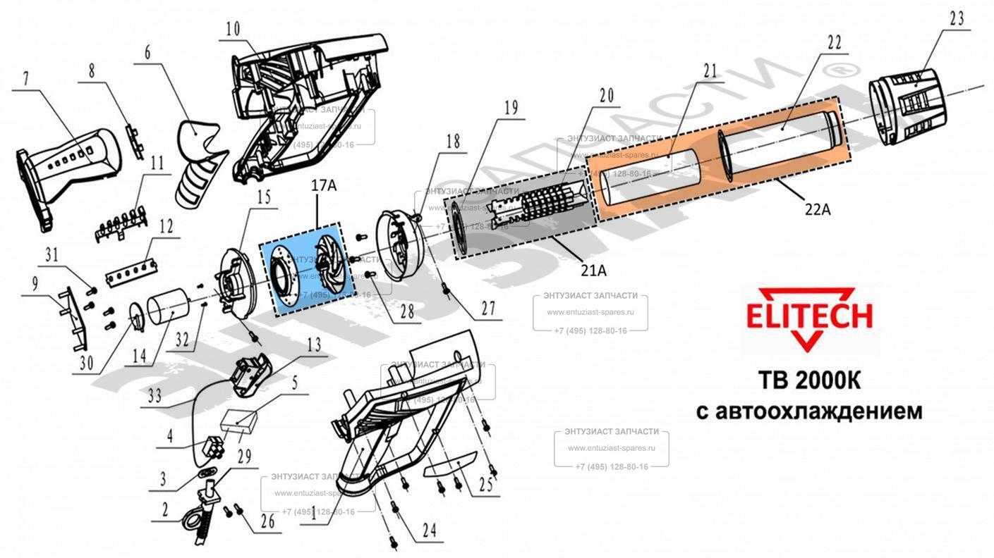 ЗАПЧАСТИ ДЛЯ ФЕНА ТЕХНИЧЕСКОГО ЭЛЕКТРИЧЕСКОГО ELITECH ТВ 2000К (2018 ГОД)