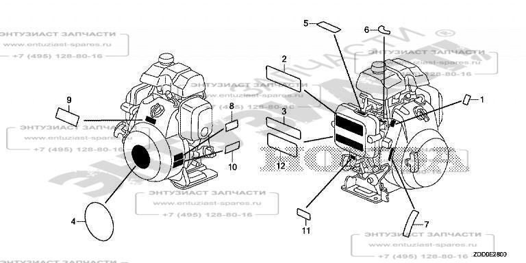 ЗАПЧАСТИ ДЛЯ ДВИГАТЕЛЯ БЕНЗИНОВОГО HONDA GX100RT (ТИП VSW4) (ТАБЛИЧКИ МАРКИРОВОЧНЫЕ)