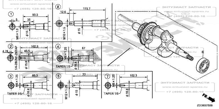 ЗАПЧАСТИ ДЛЯ ДВИГАТЕЛЯ БЕНЗИНОВОГО HONDA GX100RT (ТИП VSW4) (ВАЛ КОЛЕНЧАТЫЙ)
