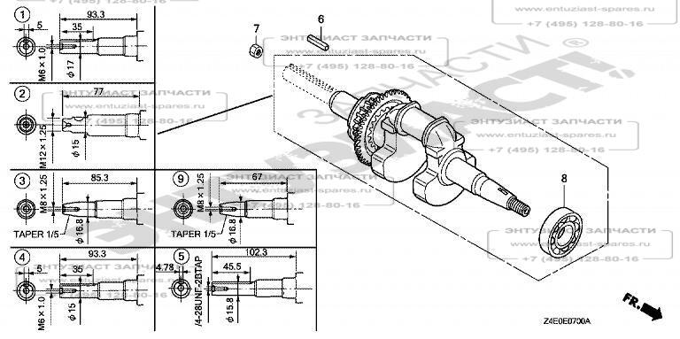 ЗАПЧАСТИ ДЛЯ ДВИГАТЕЛЯ БЕНЗИНОВОГО HONDA GX100U (ТИП KRGF) (ВАЛ КОЛЕНЧАТЫЙ)