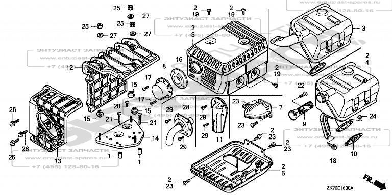 Honda ЗАПЧАСТИ ДЛЯ ДВИГАТЕЛЯ БЕНЗИНОВОГО HONDA GX120K1 (ТИП TX26 GC01-4300001-9099999) (ГЛУШИТЕЛЬ)
