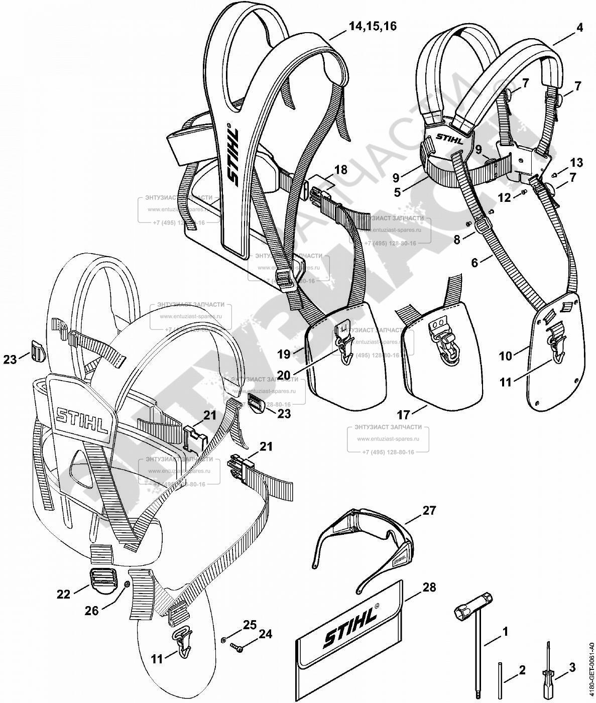 ЗАПЧАСТИ ДЛЯ ТРИММЕРА-КУСТОРЕЗА БЕНЗИНОВОГО STIHL FS 311 (ИНСТРУМЕНТ, ПОДВЕСНАЯ СИСТЕМА)