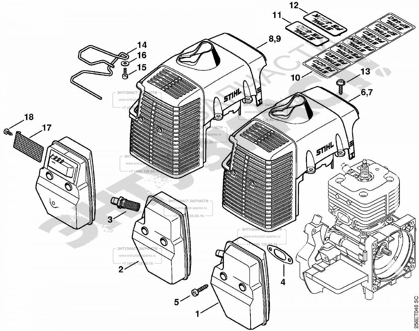 Stihl ЗАПЧАСТИ ДЛЯ ТРИММЕРА-КУСТОРЕЗА БЕНЗИНОВОГО STIHL FS 400, FS 450, FS 480 (ГЛУШИТЕЛЬ, КОЖУХ)
