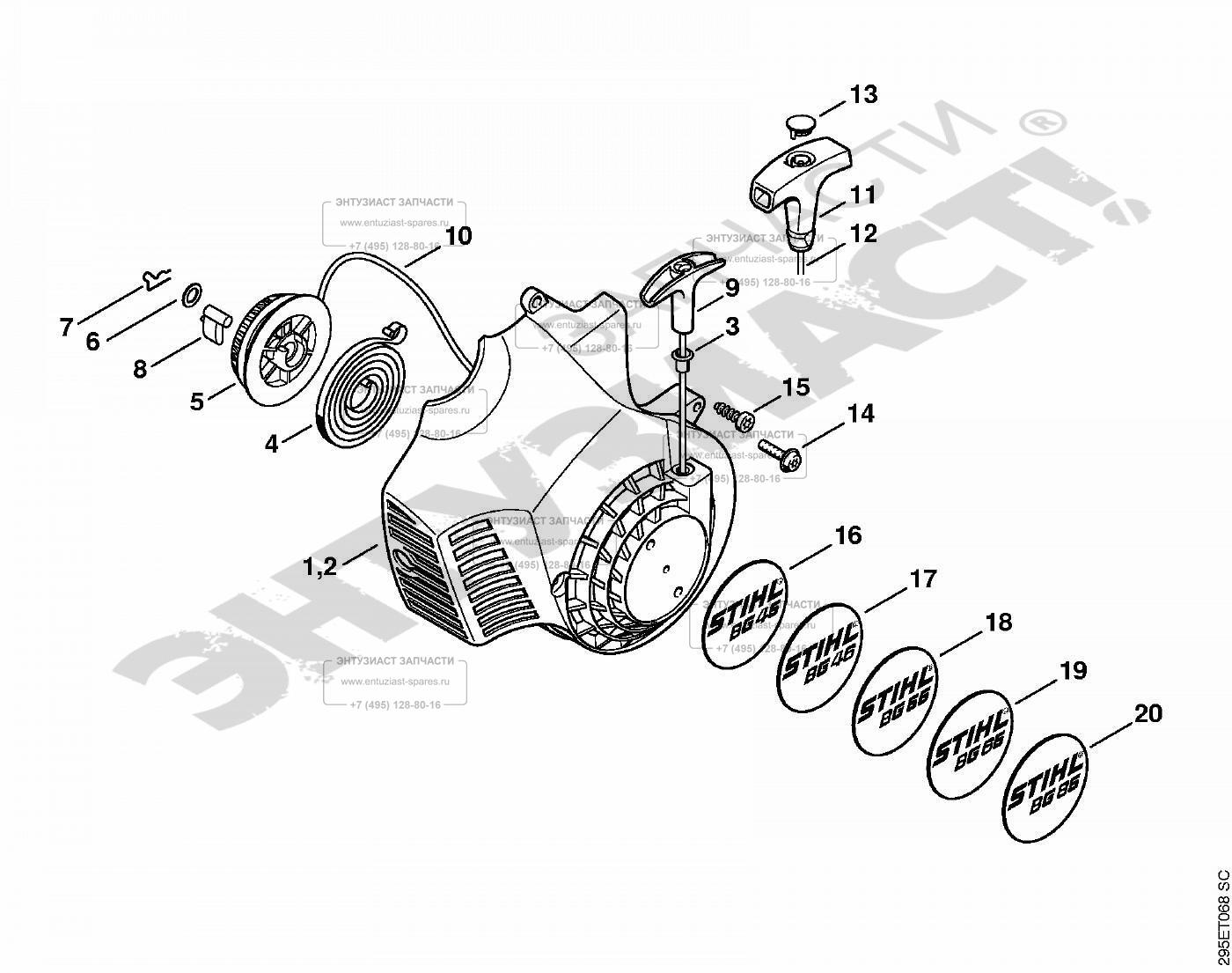 Stihl ЗАПЧАСТИ ДЛЯ ВОЗДУХОДУВКИ БЕНЗИНОВОЙ STIHL BG 45, BG 46, BG 55, BG 65, BG 85 (СТАРТЕР РУЧНОЙ)