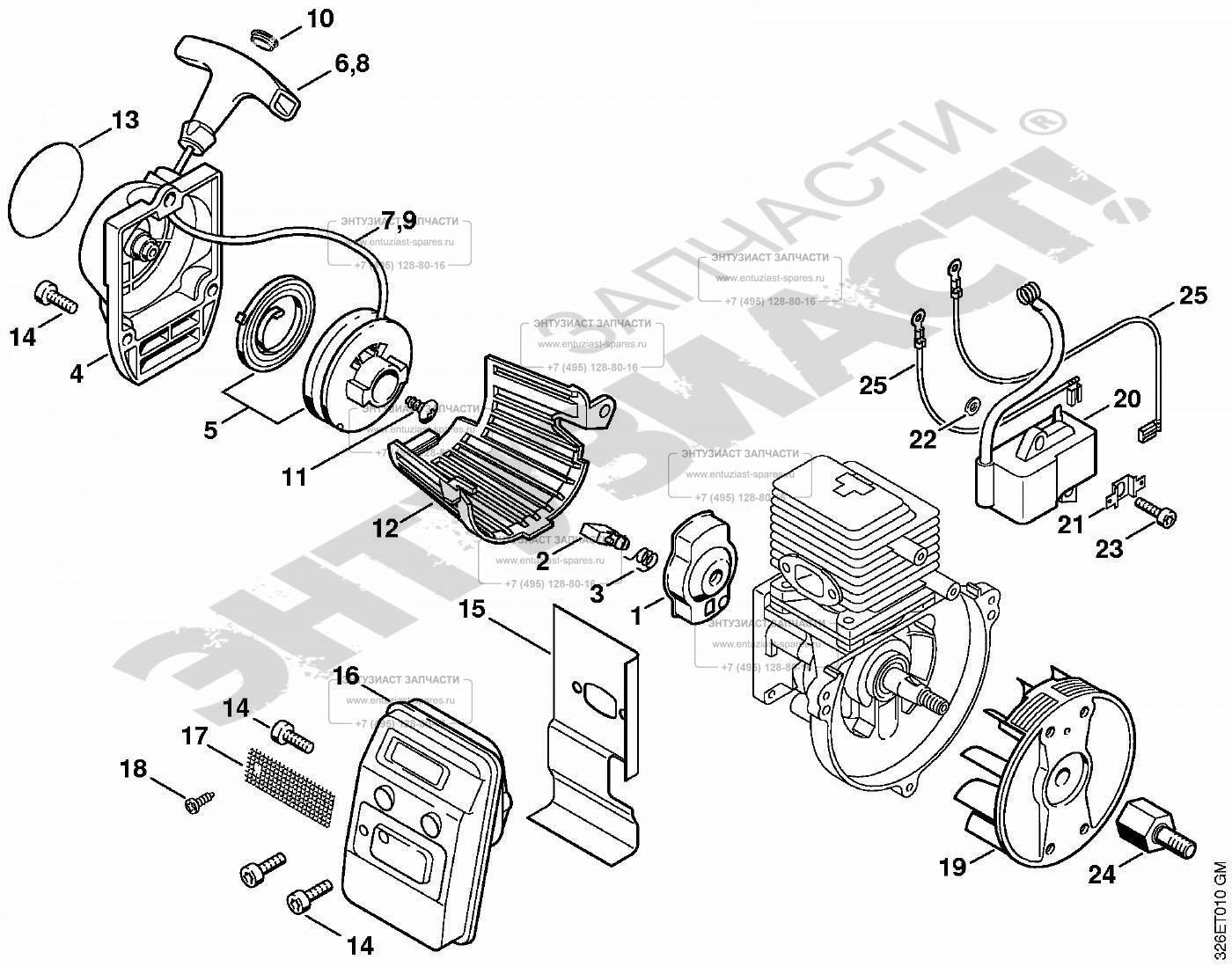ЗАПЧАСТИ ДЛЯ ВОЗДУХОДУВКИ БЕНЗИНОВОЙ STIHL BG 75 (СТАРТЕР РУЧНОЙ, СИСТЕМА ЗАЖИГАНИЯ)