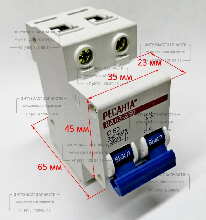 Автомат 2Р 50А для 15 кВа (Ц) Ресанта Автомат 2Р 50А для 15 кВа (Ц) 874