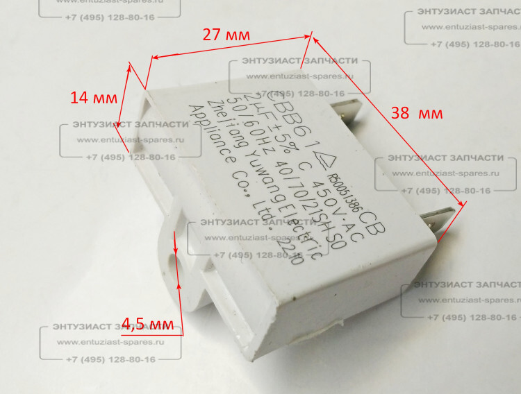 Конденсатор 2mF 450V прямоугольный для ТГП-75000(15) ВНА Ресанта Конденсатор 2mF 450V прямоугольный для ТГП-75000(15) ВНА 223