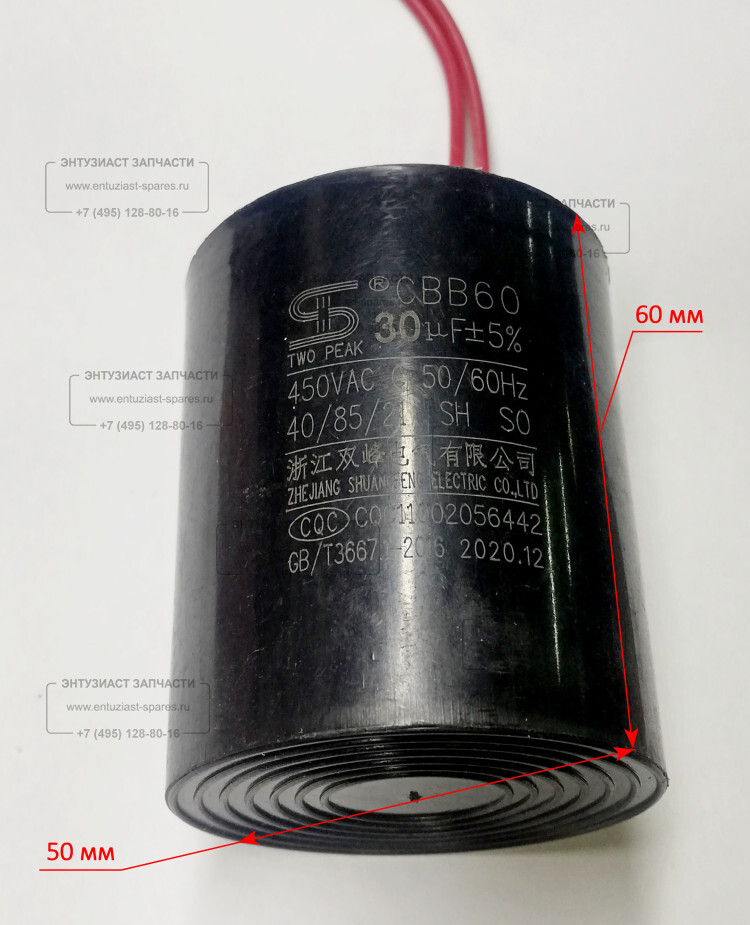 Наименование: Конденсатор 30мкФ 450V h=60,8мм d=50мм для СН-100В(23), ФН-1500Л(19) DMN