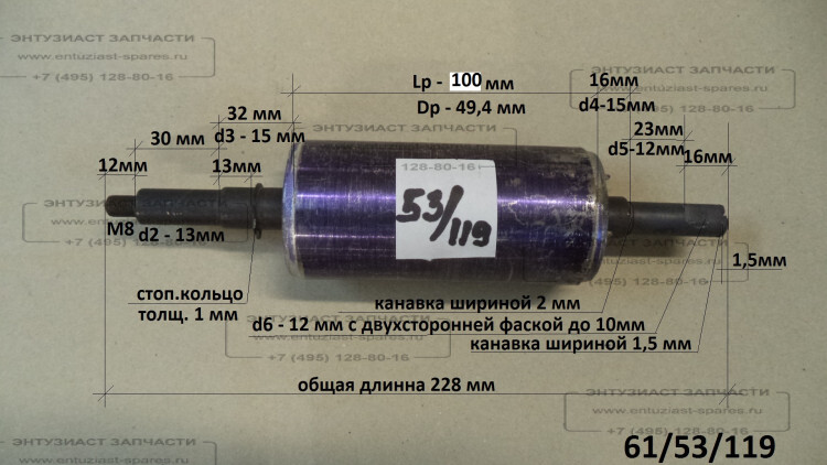 Наименование: Ротор L=230мм, Lраб.=100мм, D=50мм для ПН-1100Ч(22) SWV