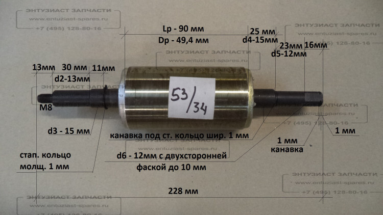 Ротор L=230мм, Lраб.=90мм, D=50мм для ПН-1100Н,АСВ-1200/24,АСВ-1200/24Н с SWV34 Вихрь Ротор L=230мм, Lраб.=90мм, D=50мм для ПН-1100Н,АСВ-1200/24,АСВ-1200/24Н с SWV34 3495