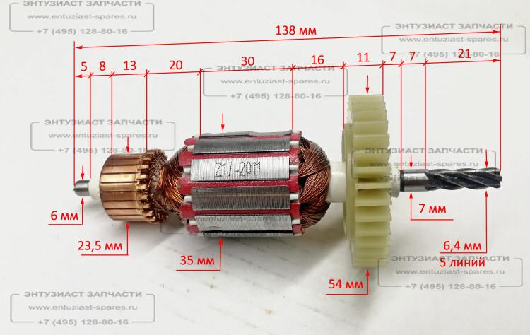 Ротор Lраб.- 30мм для ДУ-15/680(14) Ресанта, ДУ-700(16,17) GOL (61/76/119) для дрелей, шуруповертов, отверток