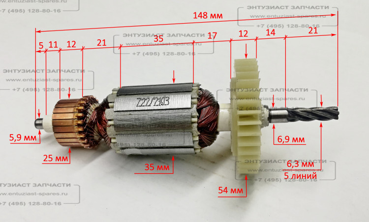 Ротор Lраб.- 35мм для ДУ-850 Вихрь, ДУ-15/850(14) Ресанта GOL (61/76/109) для дрелей, шуруповертов, отверток
