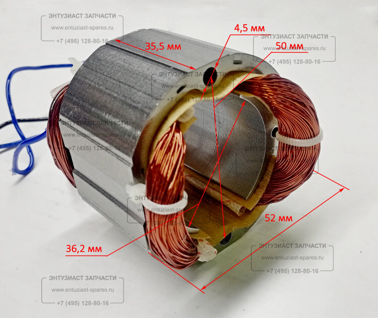 Статор Lраб.=35мм для ДУ-15/850(21) Ресанта GOL, 15/850(16) Ресанта YTA (61/76/113) для дрелей, шуруповертов, отверток