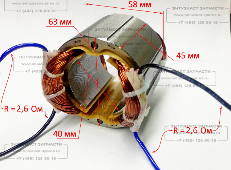 Статор Lраб.=45мм для ДУ-16/1100МК(38) Ресанта YTA, ДУ-1100(30) Вихрь GOL (61/76/170) для дрелей, шуруповертов, отверток