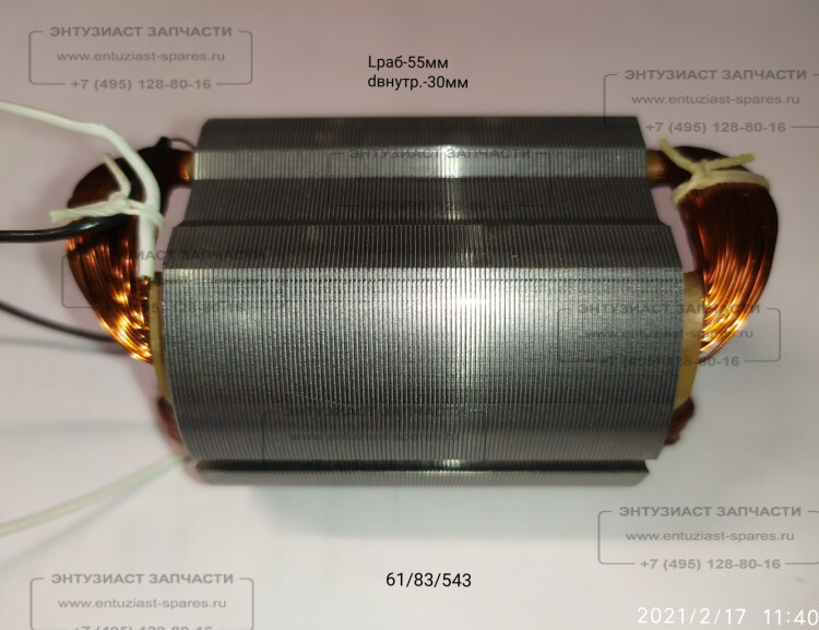 Статор Lраб.=55 мм для УШМ-115/800 Ресанта, 115/650(31) LIW (61/83/543) для машин шлифовальных, полировальных, напильников
