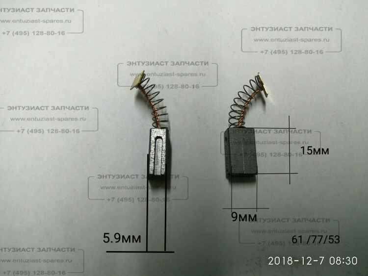 Угольная щётка 6х9х15мм для ЛШМ-75/800(44) KNT, ELM-1000,1100,11A32 c QYV021, КР-1200ЭП Ресанта QYV (61/77/53) для машин шлифовальных, полировальных, напильников