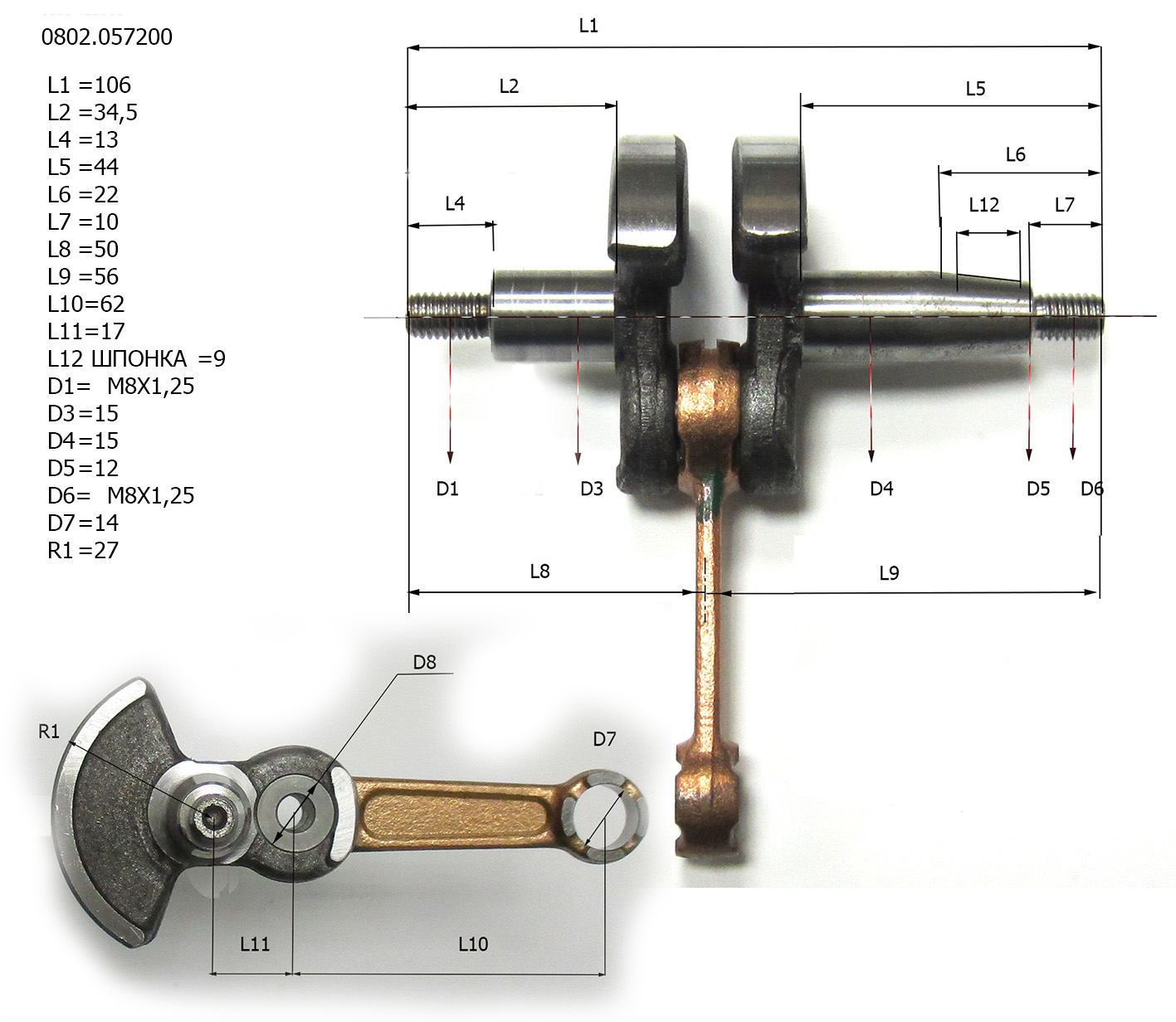 Вал коленчатый в сборе (0802.057200) для триммеров